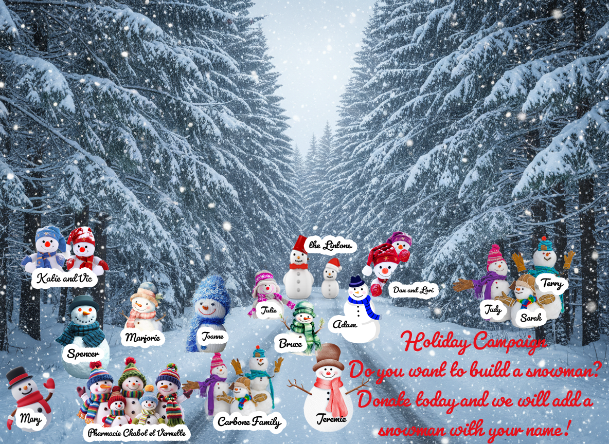 Help us create a forest of snowmen, any donation you make will put a snowman in the forest! With your name!!!